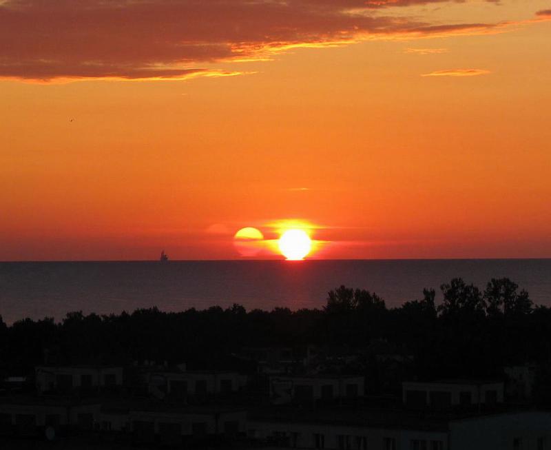 В небе восходят ещё два Солнца? 10 июля 2009 года, удивительный тройной восход Солнца был сфотографирован около 4 часов 30 минут утра над Гданьской бухтой в Гданьске, Польша.